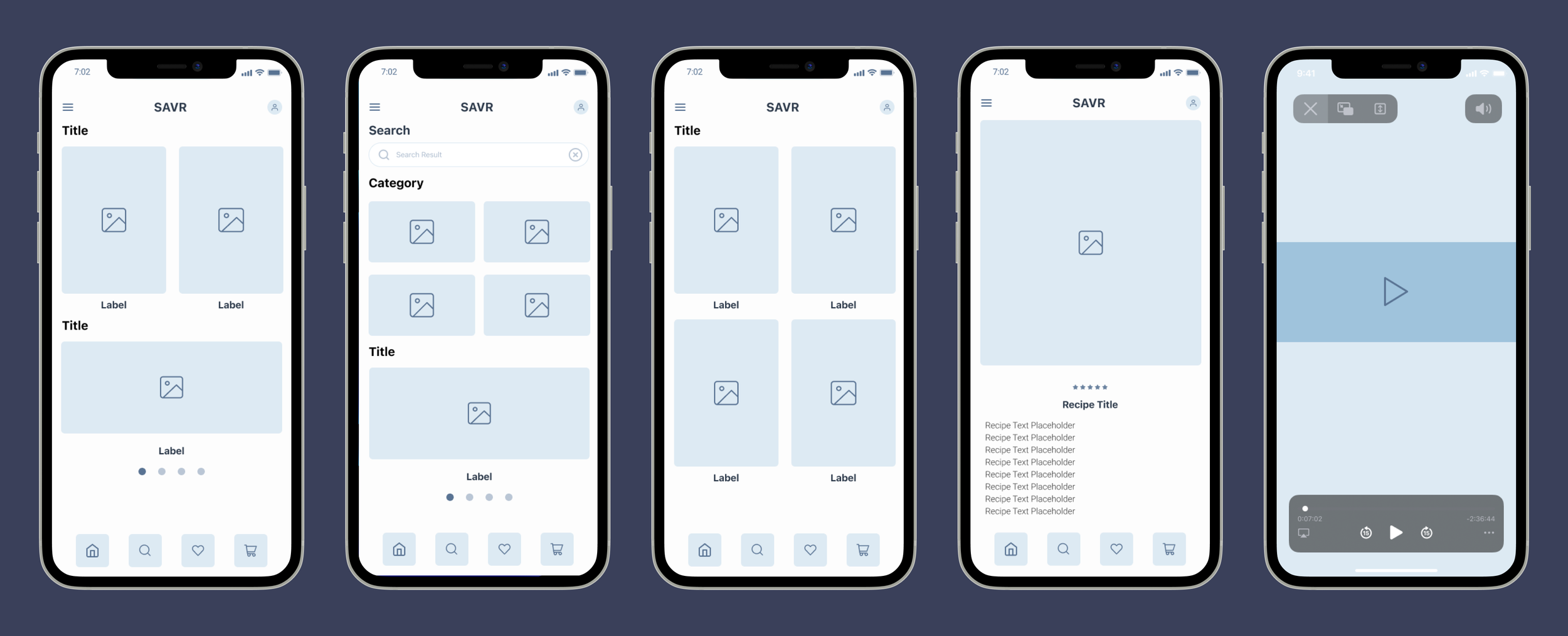 By combining all the design elements, I have created the prototype for the SAVR app. The following video shows the user flow of searching for a recipe to try and watching the video instructions. The video also shows all the app pages, animations, and functionalities.